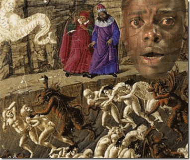 "GET OUT", LITTLE BLACK SAMBO, THE SCIENTIFIC SATANIC PLOT AGAINST BLACK PEOPLE » aaaagetoutdanteblackman_thumb.gif