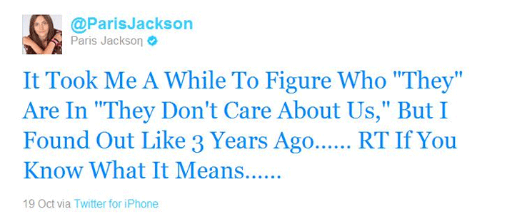 In June 2013, 15 year old Paris Jackson was rushed to the hospital for an alleged suicide attempt. She reportedly told whoever could hear that she didn’t want to die. She recovered and went into seclusion. Her ILLUMINATI twits have ended.